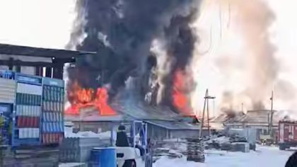 Новости Под Красноярском горит склад с пиломатериалами