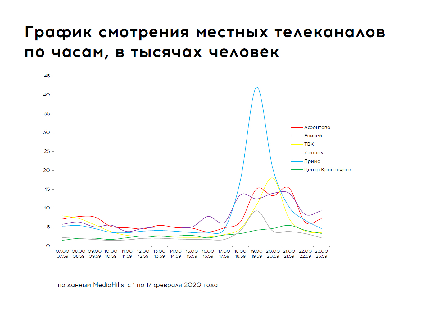 Раньше замерами занимался только Mediascope, и Прима публиковала данные этой аналитической компании. Сейчас есть альтернатива — MediaHills, площадка, которая тщательнее анализирует телесмотрение в регионах. Важным доводом было и количество пиплметров в Красноярске.