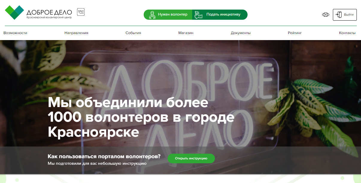 Зарегистрируйтесь на сайте Красноярского волонтерского центра «Доброе дело», чтобы стать частью важного проекта, расширить круг общения или найти тех, кто поддержит ваши идеи.