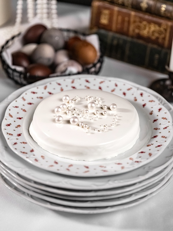 Кулич — 1200 рублей. Кондитеры объединили сдобу с кремом «Патисьер», изюмом и курагой, а белковый купол усеяли жемчугом.