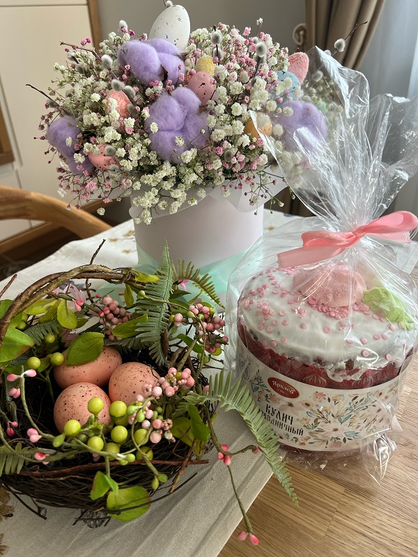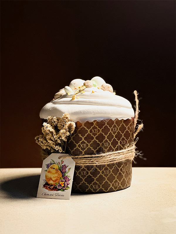 Куличи массой 250 или 400 граммов. Это классические куличи с изюмом и сахарной помадкой, украшенные яркой посыпкой. Большой кулич также предлагается в красочной коробке, которую можно взять с собой в гости или купить в качестве подарка.