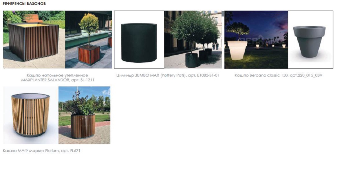Архитекторы уже предложили разные варианты кашпо. Образцы представлены в технических заданиях на проектирование благоустройства пешеходных частей вдоль крупных магистральных улиц.