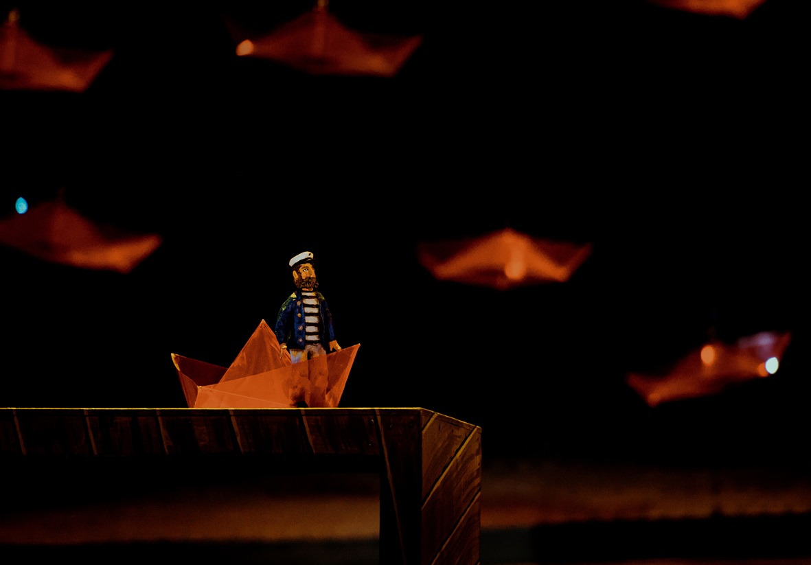 Александра Алексеева создала портовый городок, дома которого закрывают вид на море, оставляя лишь небольшой просвет. Периодически стены становятся прозрачным, но это всё ещё стены, всё ещё преграда. Лишь в финале дома разъезжаются, и жители портового городка наконец-то видят настоящее море и красочное небо. Декорации и образы героев лишены романтичности, а наполнены энергией реальной жизни, которая заставляет действовать.