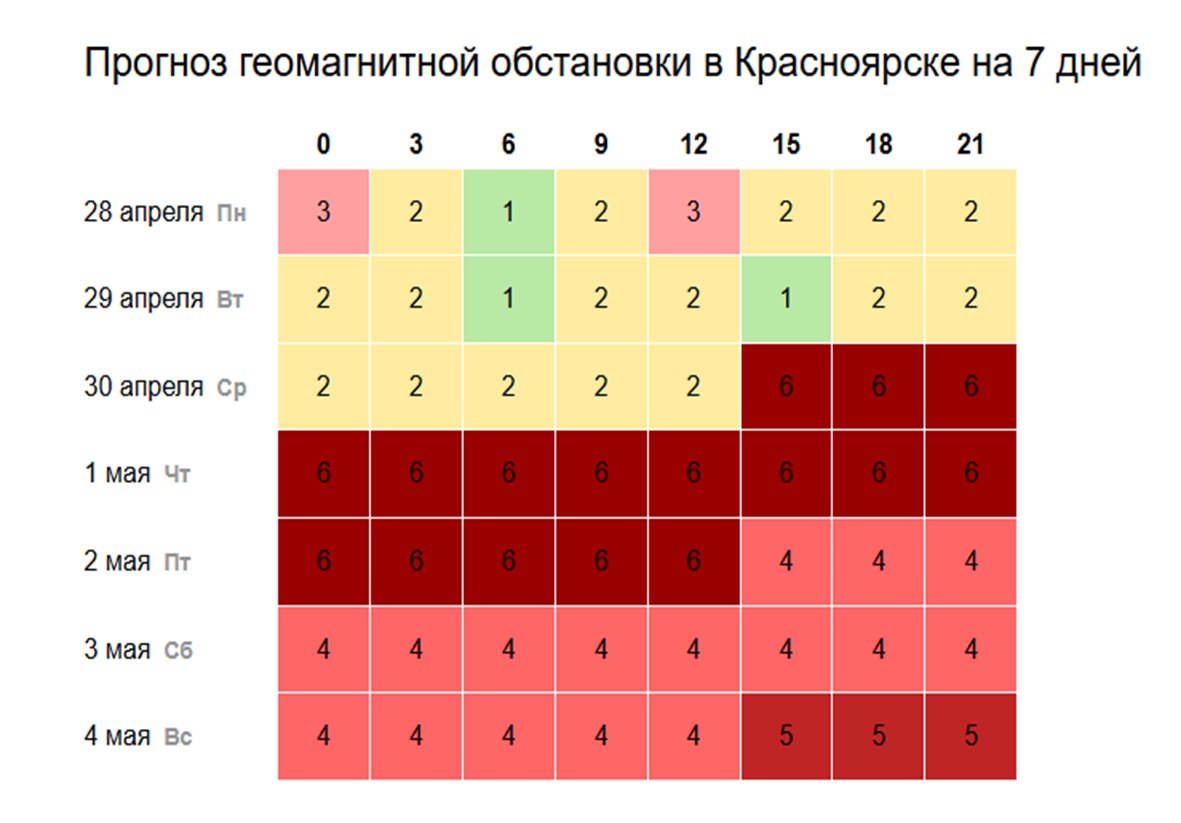 В Красноярске на этой неделе ожидаются сильные магнитные бури. По данным сайта time-in.ru, возмущения в геомагнитном поле начнутся вечером 30 апреля.