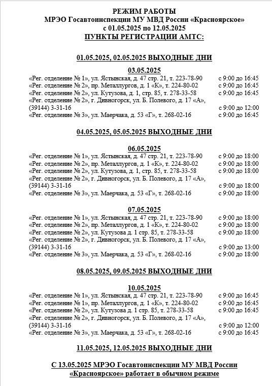 В Красноярском крае опубликовали графики работы медучреждений, Госавтоинспекции, отделений МФЦ и почты России.
