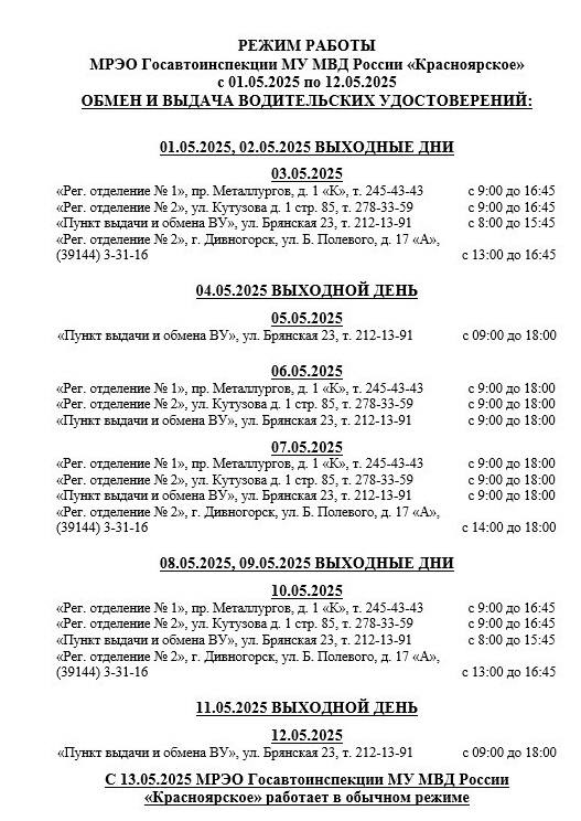 Как будут работать красноярские медучреждения, МФЦ, ГАИ и почта на майских праздниках