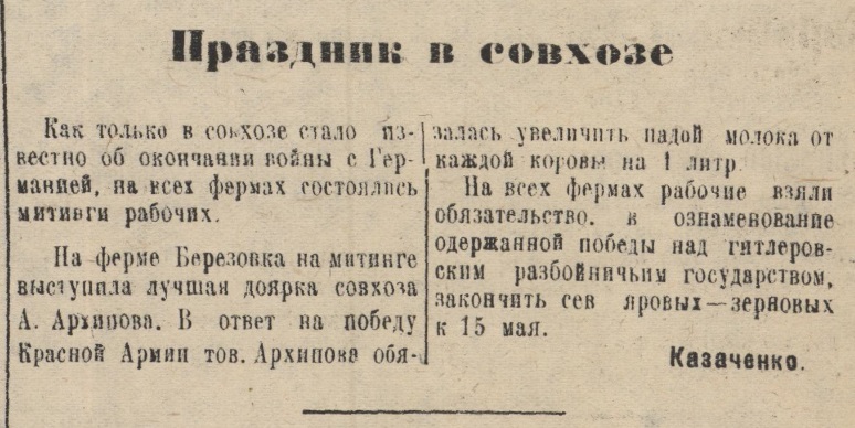 Собрали архивные вырезки — от поздравлений с Победой до обещаний перевыполнить план