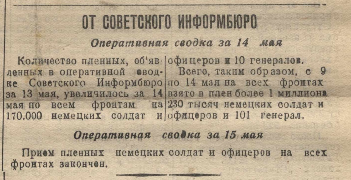 Сохранились и сводки от советского Информбюро о количестве пленных немцев.
