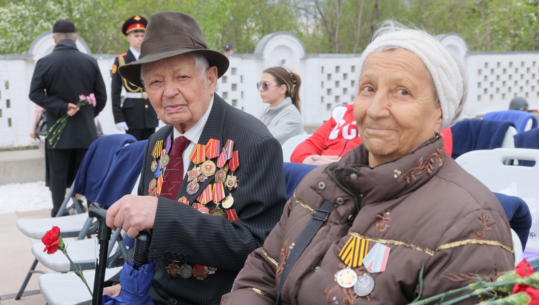 Уже в 8:00 на Театральной площади заработали фонтаны. Сегодня до полудня они будут исполнять светомузыкальную программу с песнями военных лет. С 9 часов у мэрии началось официальное празднование: из динамиков на городских часах прозвучал голос легендарного диктора Юрия Левитана.