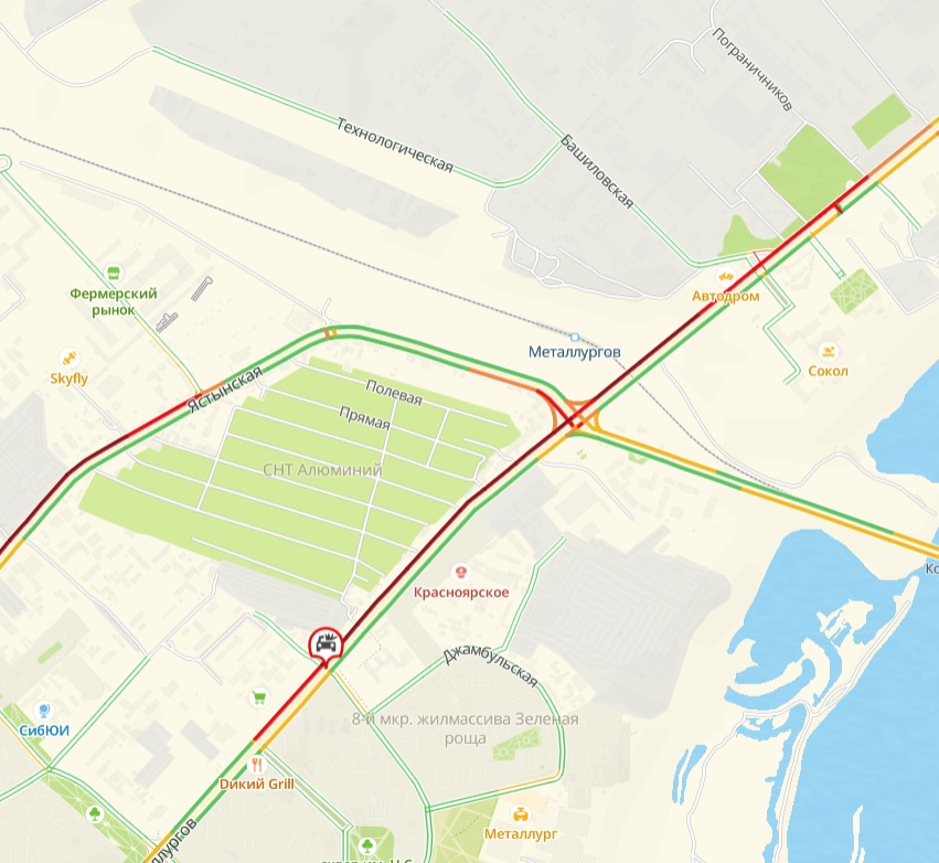 В сторону центра полностью перекрыта левая полоса. По информации 2ГИС, на проспекте образовалась большая пробка.