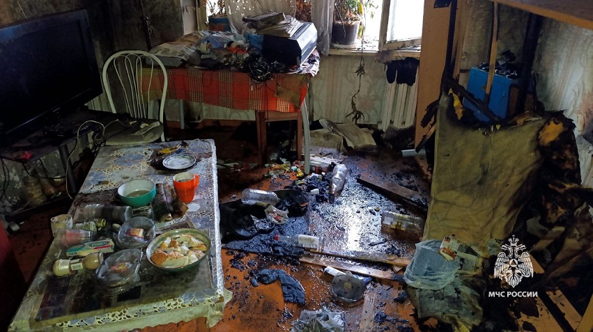 В комнате обнаружили тело пожилого мужчины, он задохнулся дымом. Хозяин квартиры уснул с сигаретой в руке, из-за чего и произошёл пожар.