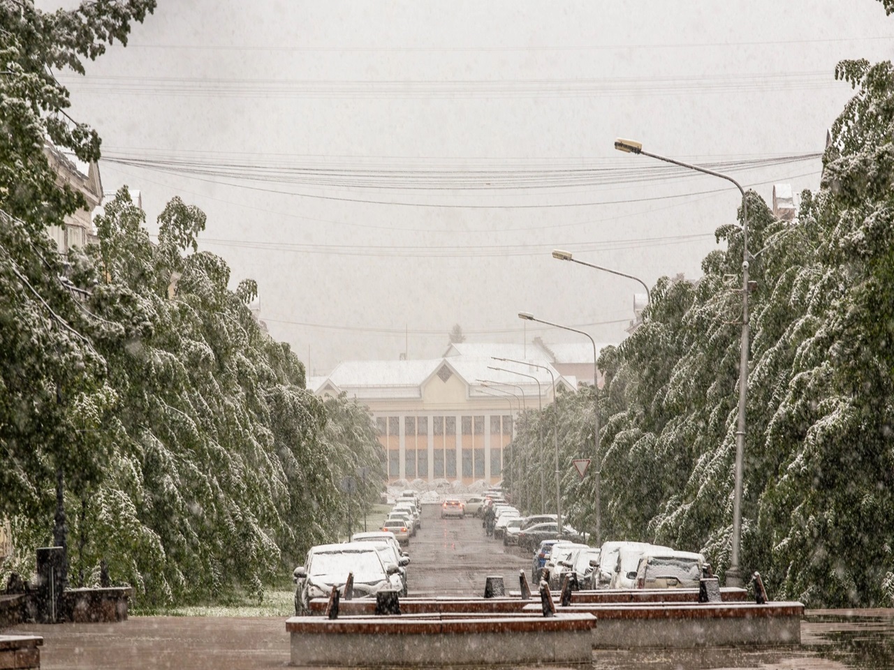 В Красноярском крае в конце мая выпал снег. Горожане делятся фотографиями заснеженных сопок, огородов и дорог.
