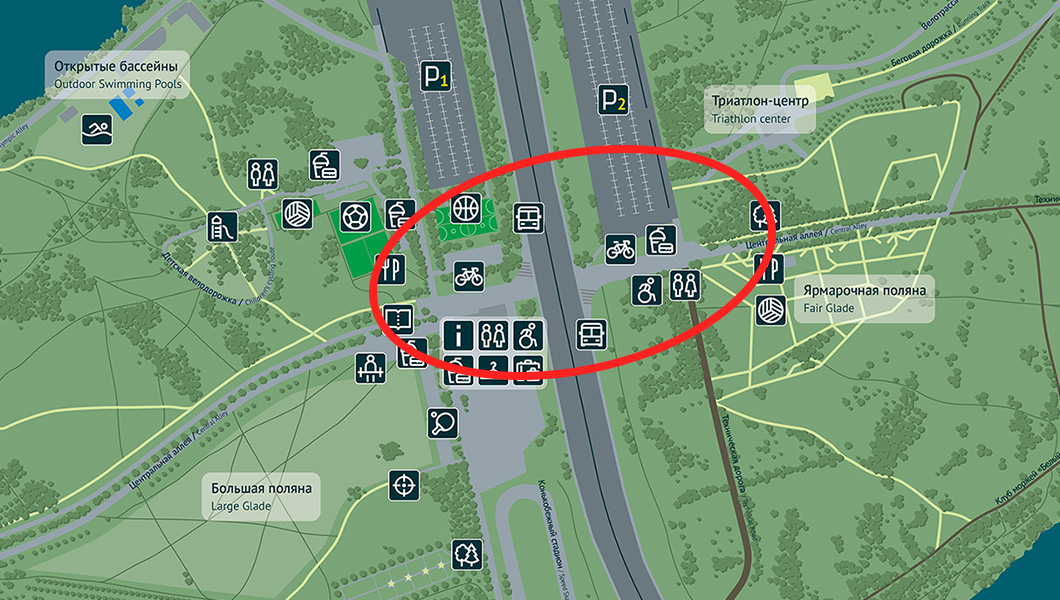 - Ограничение движения или снижение скорости на участке от центрального до восточного перекрёстков. Это — относительно всей площади острова — малюсенький «кусочек» под Октябрьским мостом, площадка напротив информационного центра с западной стороны и площадка напротив пунктов проката и общепита с восточной стороны.