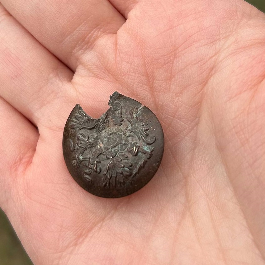 — И, конечно, часто теряли какие-то вещи в траве. Например, мы нашли пробитую пуговицу от мундира. Обнаружили и женскую пуговицу, явно авторской работы. Ещё из находок увольнительный жетон, его владелец защищал Владивостокскую крепость.