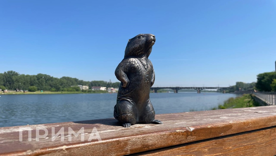Суслика-борца установили на деревянных перилах Ярыгинской набережной. Зверьку дали имя Яр, а на его груди красуется буква «я».