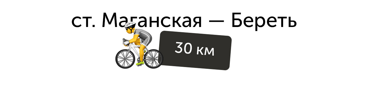 Ещё один непростой веломаршрут растянулся на 30 км (в одну сторону). Он стартует от станции Маганской, куда вас чуть больше чем за час домчит электричка. Чтобы добраться до Берети, необходимо двигаться в противоположную от путей сторону. Треть пути — это приличный асфальт, далее идёт просёлочная дорога.