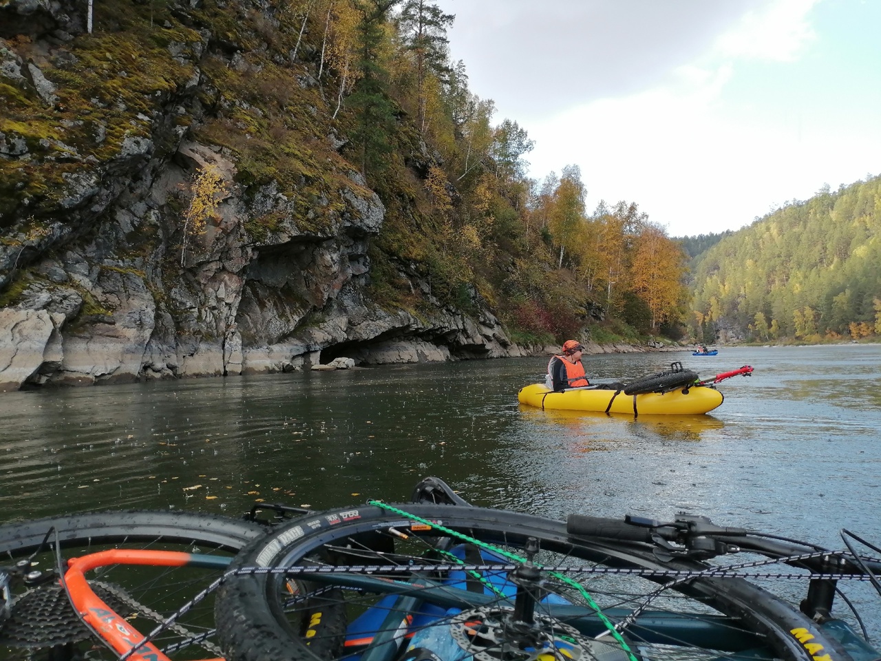 Здесь опять разгружаетесь, складываете пакрафты и на велосипеде выдвигаетесь в Красноярск.