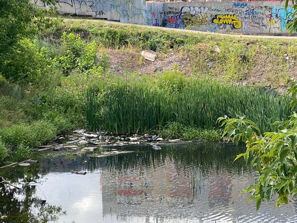 Не появилось тут и предупреждающих знаков о том, что к воде спускаться опасно. Напомним, что ближе к частному сектору и в районе первого озера болотистая местность беспорядочно заросла травой. Если по незнанию зайти слишком далеко, можно провалиться в воду.
