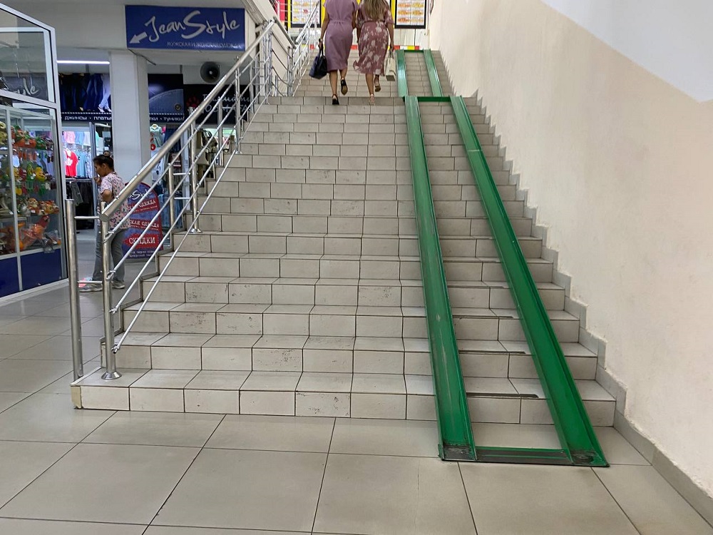 Рядом с лестницами снаружи и на лестницах внутри есть пандусы для колясок, но неуниверсальные.