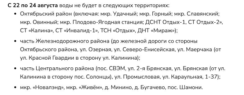 В нескольких районах Красноярска перенесли сроки отключения холодной воды