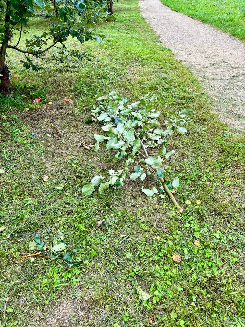 Во время сбора яблок посетители острова ломают ветки, пробуют ещё не поспевшие плоды, а затем бросают их на землю.