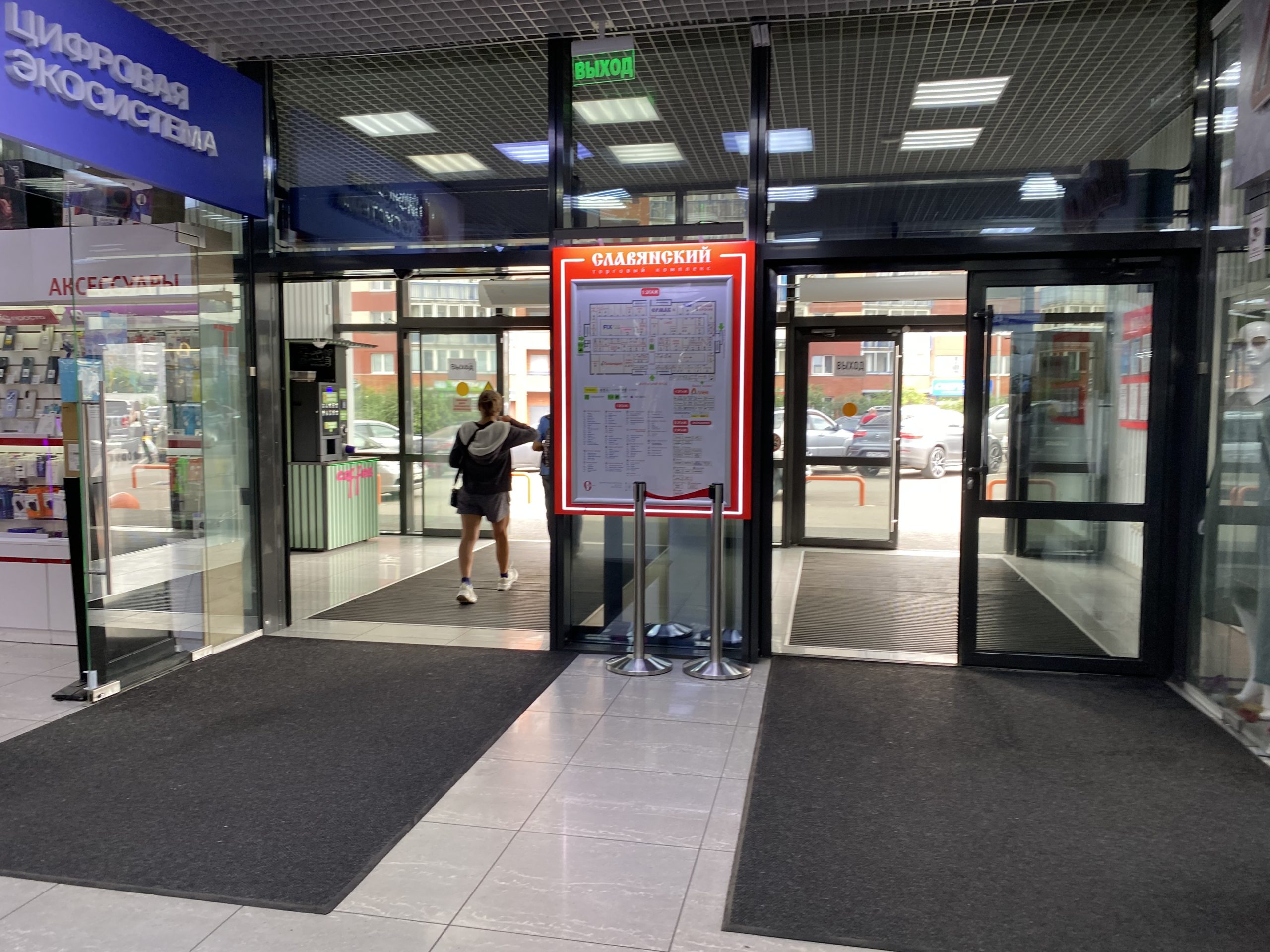 Это торговый комплекс в самом прямом смысле, и, если судить по отзывам на 2GIS, покупатели «Славянским» довольны. Приходить сюда целесообразно исключительно за покупками и без детей, если планируете шопинг на весь день. Правда, и сами вы вряд ли выдержите, потому как даже присесть толком негде. Скамеек для отдыха внутри — раз-два и обчёлся, а снаружи и вовсе нет.