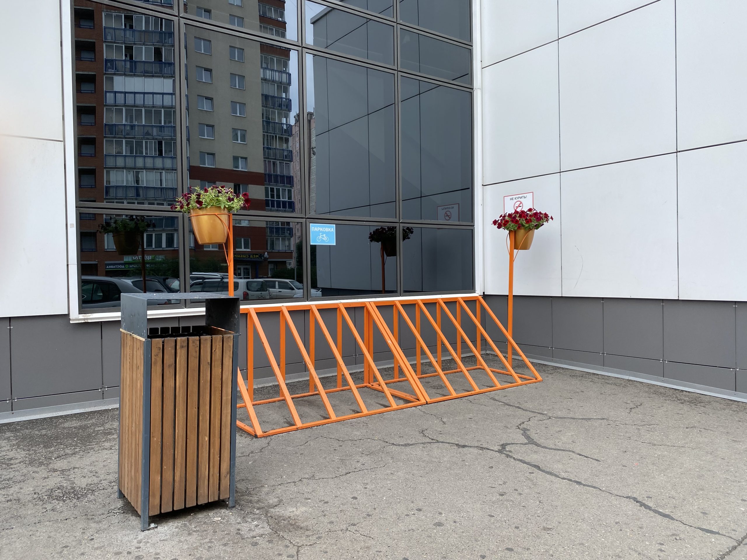 Также у центрального входа установлена каркасная парковка для велосипедов. Мест совсем мало, но, судя по тому, что тут практически всегда пусто, это не беда.