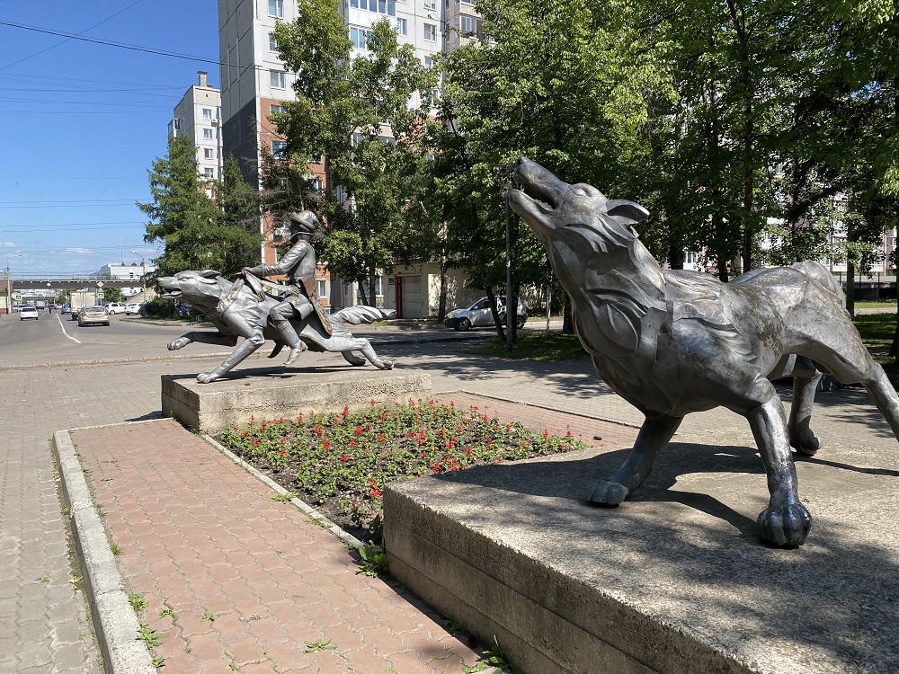 Вот мы и добрались до самого главного. Скульптура «Иван-царевич и Серый Волк» — местная достопримечательность, из-за которой сквер, собственно, и получил название «Сказочный». Парнишку и двоих волков стоит поразглядывать — у фигур много мелких интересных деталей, вроде вензелей на кафтане Ивана.
