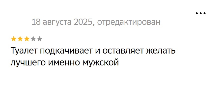 Отдельного внимания заслуживает туалет. Мы были только в женском, но хватило и этого. Здесь вопросы не к уборке. С этой стороны вроде порядок — полы, унитазы и раковины вымыты, пахнет чистящим средством. По крайней мере с утра. Однако ощущения чистоты нет — туалетные комнаты явно и давно требуют ремонта. На входной двери дыры, раковины в пожелтевших трещинах, краны в ржавчине и известковом налете, кафель и зеркала со сколами — суеверному человеку уже не посмотреться.