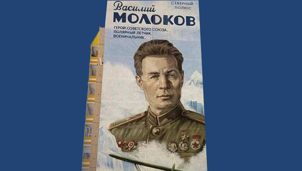 К 80-летию Победы в Великой Отечественной войне фасад дома на Взлётке украсил портрет полярного лётчика Василия Молокова. В 1930-е годы Молоков работал на трассе Красноярск — Игарка и участвовал в спасении экипажа парохода «Челюскин», который раздавило льдами в Чукотском море. За проявленное мужество Молоков и ещё шестеро лётчиков первыми в истории получили звание Героев Советского Союза. Логично, что изображение появилось на улице, названной в честь авиатора.