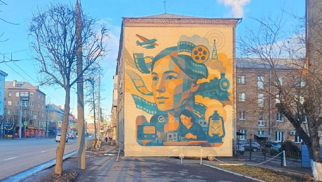 Ещё один мурал к юбилею Победы. Красноярские художники нарисовали граффити, посвящённое женщинам-труженицам тыла. В центре композиции обобщённый портрет советской труженицы времён войны. Вокруг — предметы, описывающие её вклад в Победу: радиопередатчик, кинохроника, паровоз, самолёт, радиовышка и керосиновая лампа.