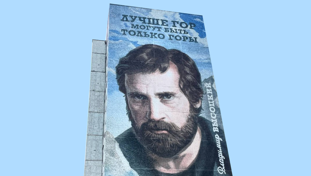 Портрет Владимира Высоцкого украсил жилой дом на Ключевской. Художники дополнили картину строчкой из песни барда «Лучше гор могут быть только горы».