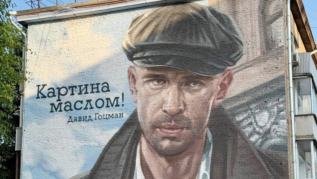 Актёра нарисовали на здании «новой канцелярии» в образе милиционера Давида Гоцмана из сериала «Ликвидация» (18+).