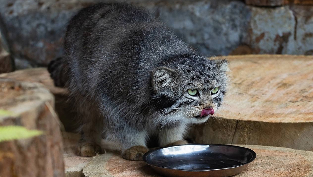 Сейчас у дикой кошки началась жировка. Манулы не впадают в спячку, поэтому усиленно набирают жир перед морозами, чтобы легко перенести зиму. Кормят манула три раза в день, в меню — мыши, крысы и сырая говядина.