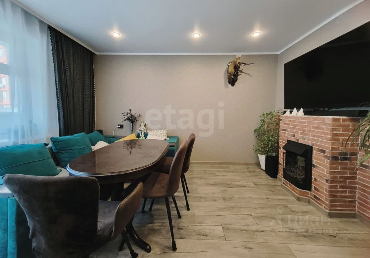 — Установлен современный кухонный гарнитур, угловой диван и кухонный стол для большой семьи — всем места хватит. Также в кухне установлен камин — это уютное дополнение к семейным вечерам!