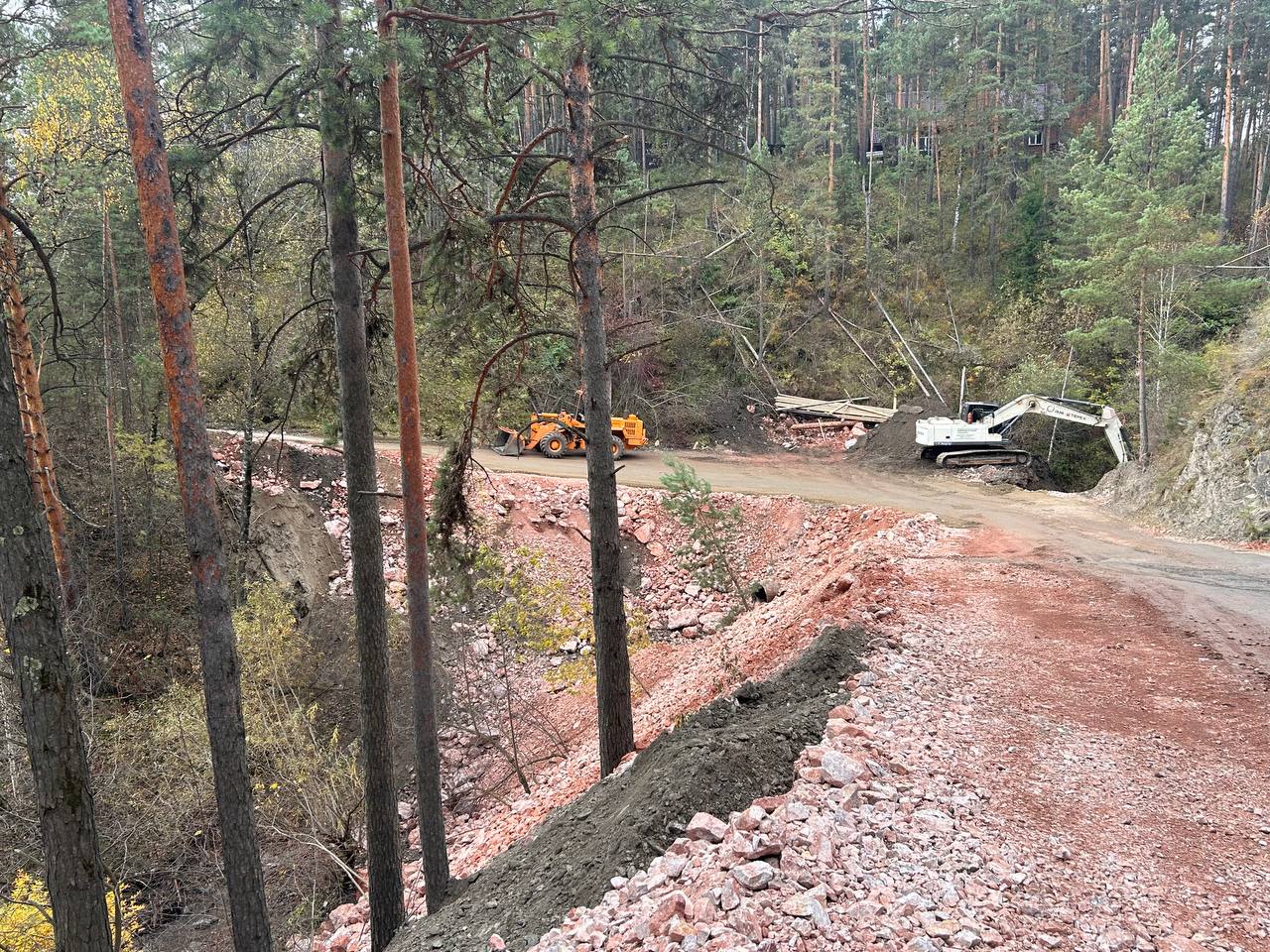 Как рассказали вы мэрии, в выходные здесь сварили пропускные трубы, проблемный участок отсыпали, что позволило сформировать две основные полосы движения. Дорогу утрамбовали и прошлись по ней грейдером. Рабочие продолжают укреплять откосы и обочины, а также бетонируют примыкания труб к земле.