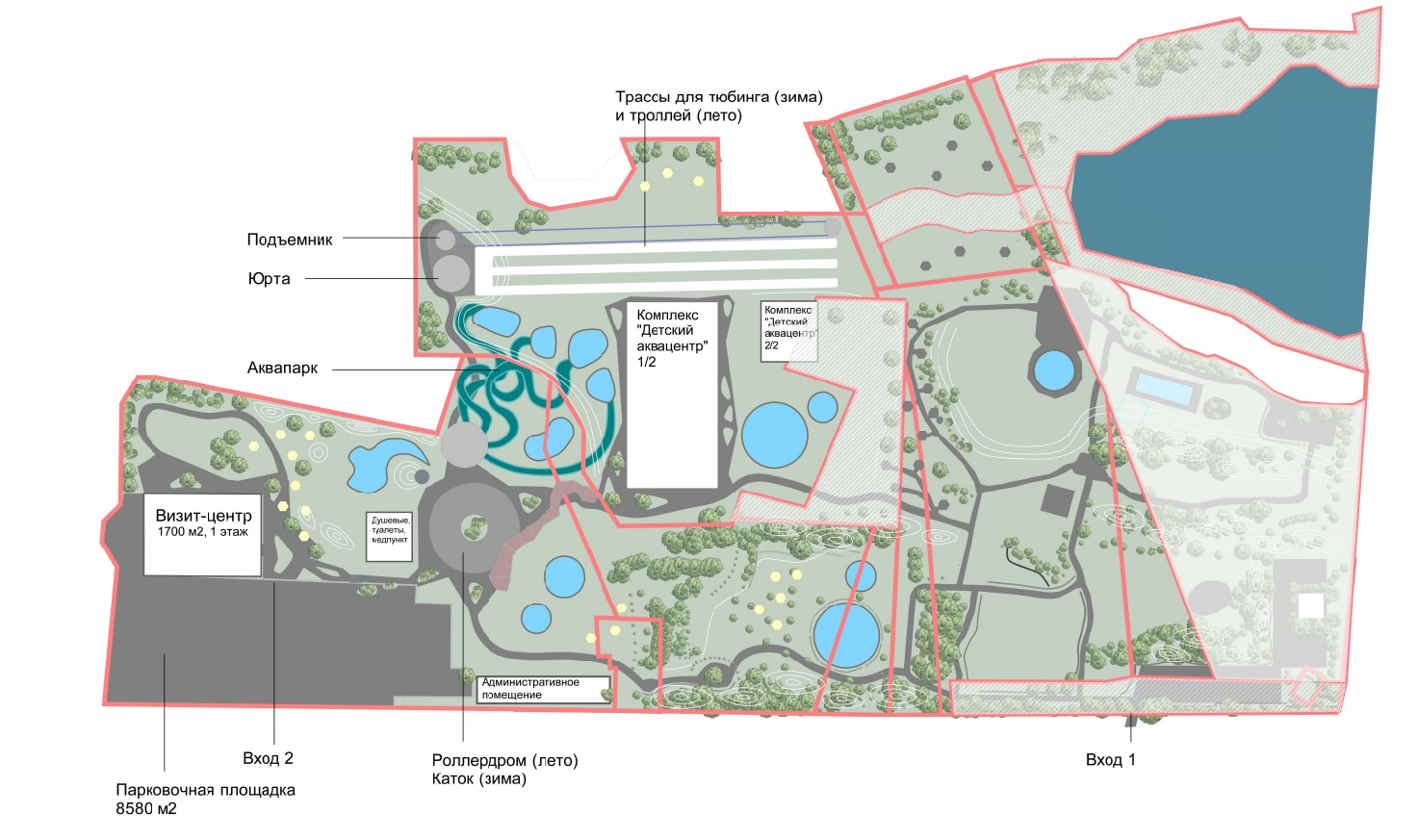 На территории построят визит-центр, сеть дорожек, комплекс бассейнов, открытый аквапарк, трассы для тюбингароллердром (зимой это будет каток). Работы предполагается провести в течение 5,5 лет за счёт собственных средств концессионера. Объём инвестиций предварительно составит свыше 500 млн рублей. Общий срок действия соглашения составит 25 лет.