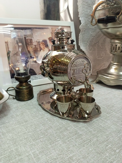Например, можно купить самовар жаровый Буфетный 1961 года выпуска объёмом 45 литров. Цена такого самовара 60 тысяч рублей. Есть экспонаты и дешевле: например, сувенирный самовар «Жигули» можно приобрести всего за три тысячи рублей.