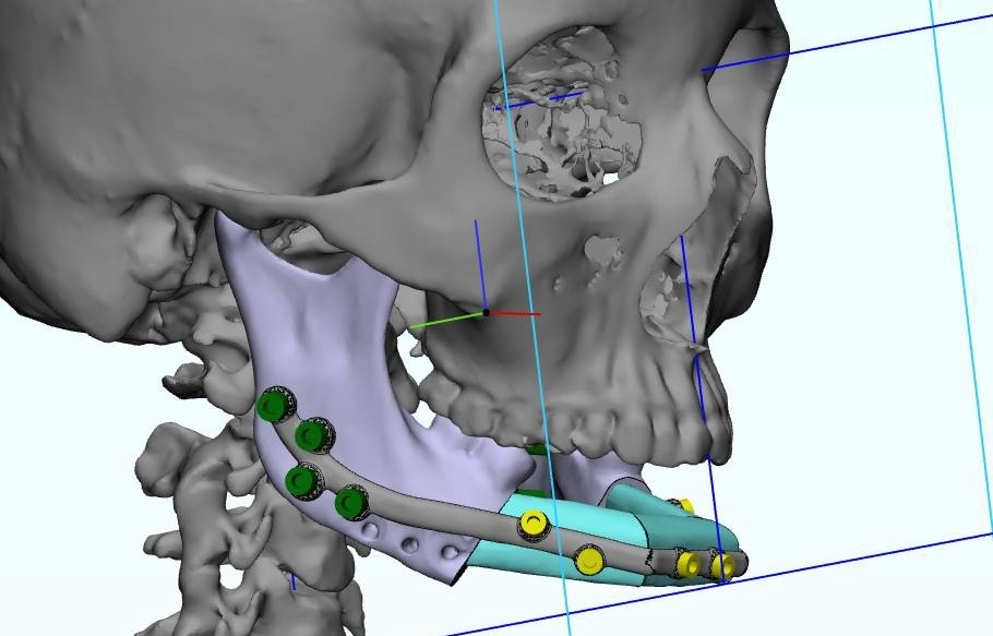 Спустя два года пациентка пожаловалась на трудности при пережёвывании пищи из-за отсутствия зубов на нижней челюсти. Врачи не могли установить протезы, так как пластина могла прорезаться через мягкие ткани. Тогда они решили примени современный метод — замещение дефекта нижней челюсти костным малоберцовым лоскутом.