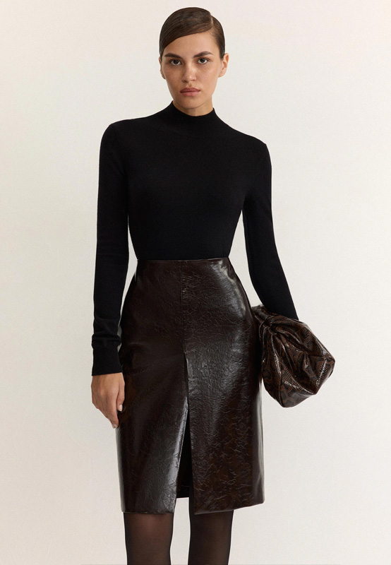 Чем заменить: вместо total добавьте в классический образ отдельные лакированные акценты. Это может быть сумка, высокие акцентные сапоги. Главное — сочетайте с матовыми тканями.
