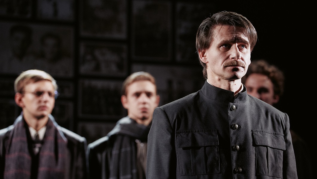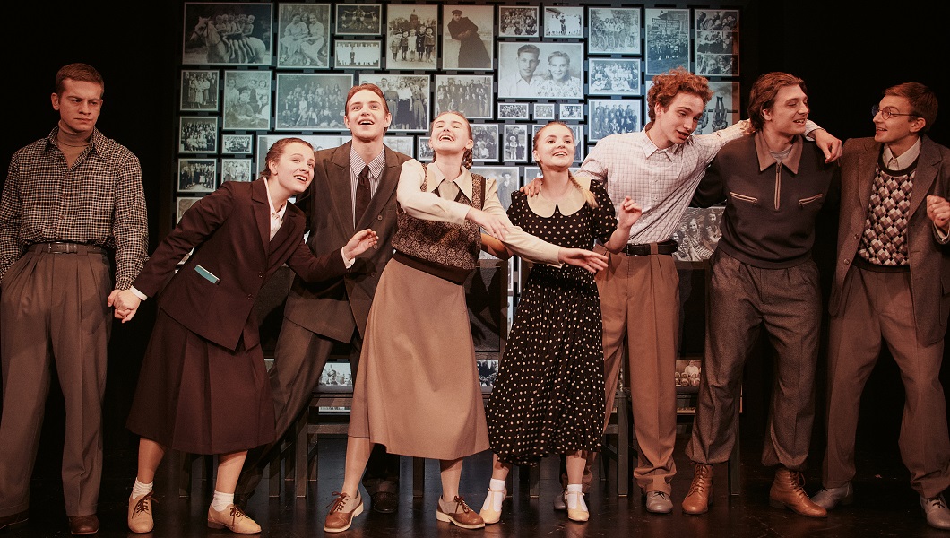 — Спектакль начинается и заканчивается одной и той же сценой. Ребята замирают на сцене, как на групповой фотографии. А на фоне пожелтевшие снимки, то есть мы буквально рассматриваем фото из семейного альбома.