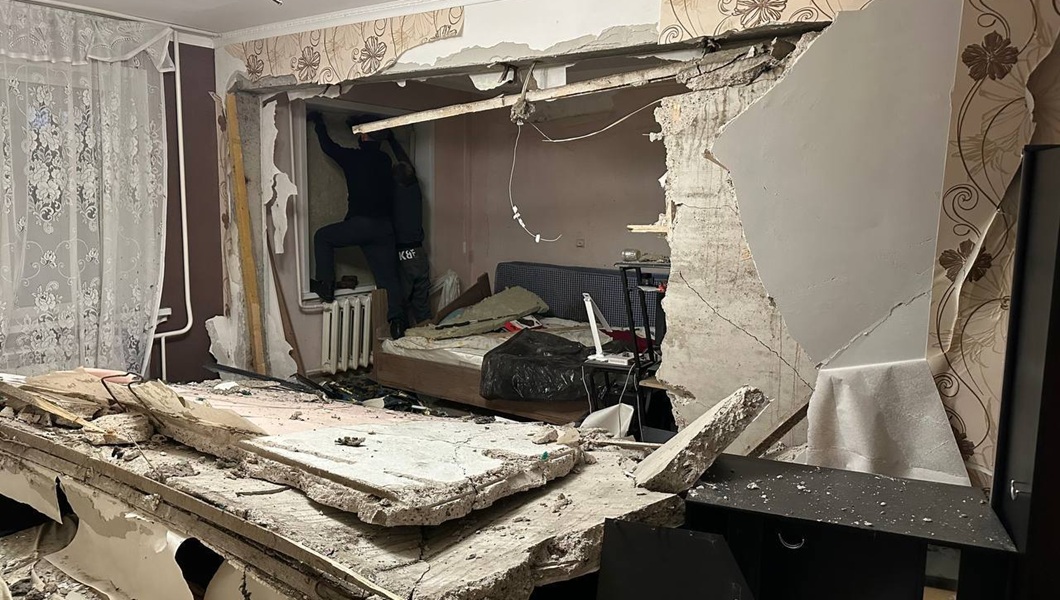 Предварительно установлено, что накануне вечером в квартире произошёл пожар на площади пять квадратов, а после взорвался баллончик аэрозоля для уничтожения насекомых. Частично разрушилась стена и выбиты окна. Уточняется, что флакон стоял около термопота.