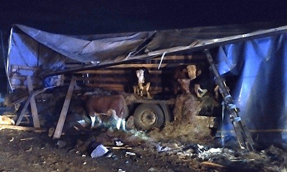 Уточняется, что в одном из прицепов перевозилось 50 быков. Четыре из них погибли в ДТП.