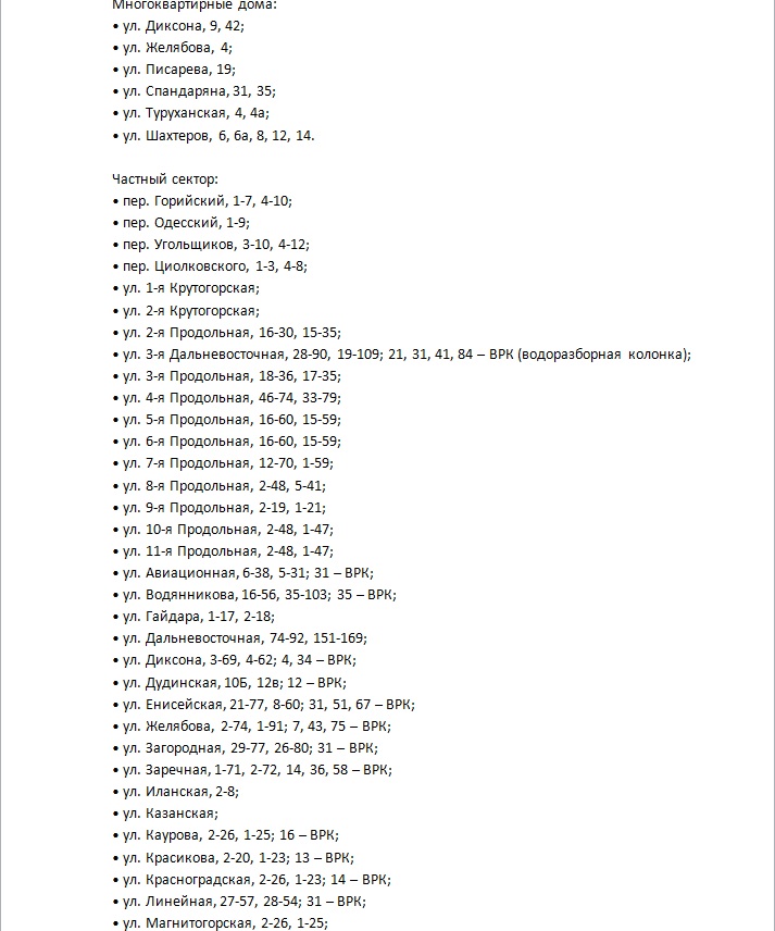 Сотни красноярцев на три дня останутся без холодной воды. Публикуем адреса