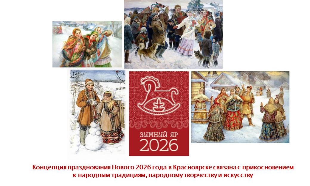 2026 год объявлен президентом России Владимиром Путиным Годом единства народов России, поэтому в Красноярске при разработке праздничной концепции сделали акцент на богатстве и самобытности русской культуры. Городские пространства будут оформлять известными народными промыслами — кружево, гжель и дымковская игрушка. Основные цвета Нового года — бежевый и красный. Тема празднования Нового года — «Зимний Яр».