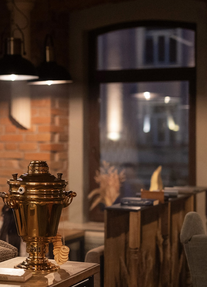 Двухэтажный особняк в самом центре предновогоднего Красноярска! Это ли не идеальное место для вашего корпоративного праздника? Такой сценарий возможен, если отметить торжество в «Духе времени». Первый этаж выполнен в стиле лобби-бара — уютный и камерный. Второй — стильная творческая квартира, подходящая для весёлых компаний. «Дух времени» гарантирует качественное меню и сопровождение: можно организовать велком-зону, устроить атмосферную фотосессию в историческом стиле. Для небольших компаний есть отдельный кабинет, где можно провести праздник в спокойной обстановке.