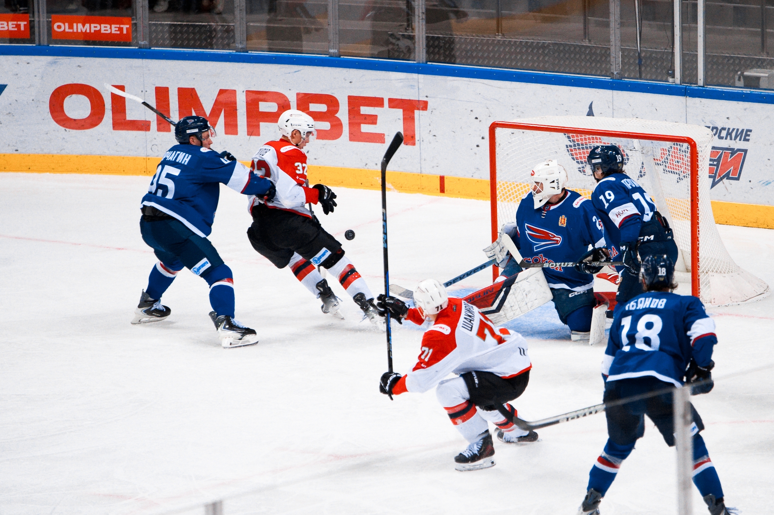 Первыми отличились «крылатые» — уже на 3-й минуте шайбу забросил Руслан Абянов. Однако затем в ворота красноярцев залетели 10 голов. Лишь на 57-й минуте Владимиру Конову удалось отквитать одну шайбу, установив окончательный счет — 2:10.