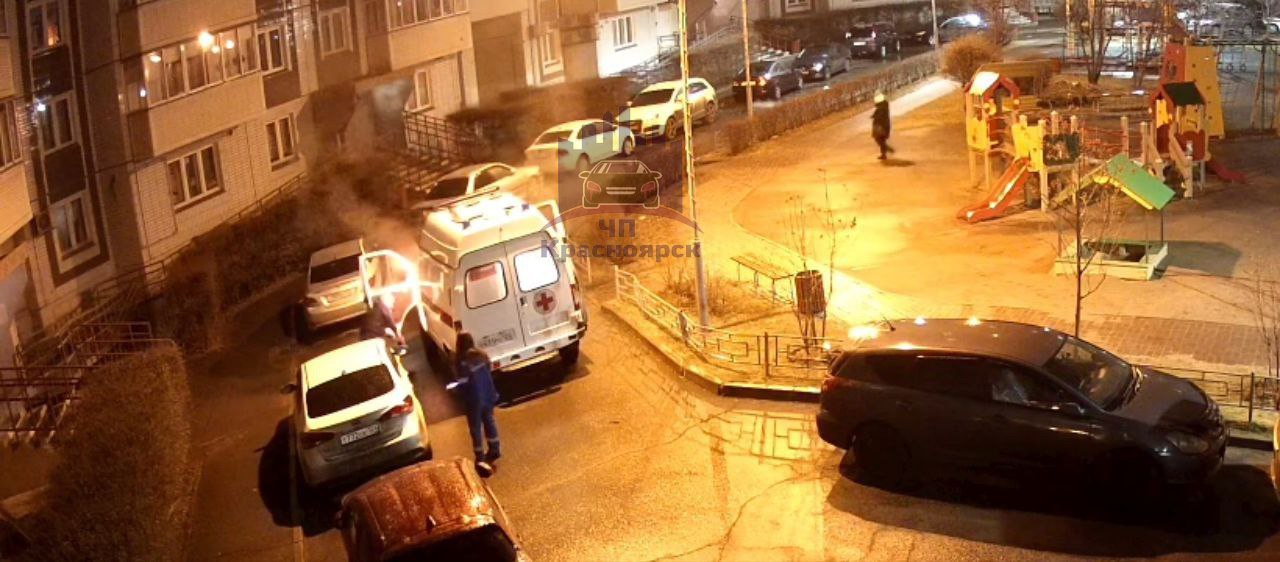 Машина скорой сгорела в красноярском Северном