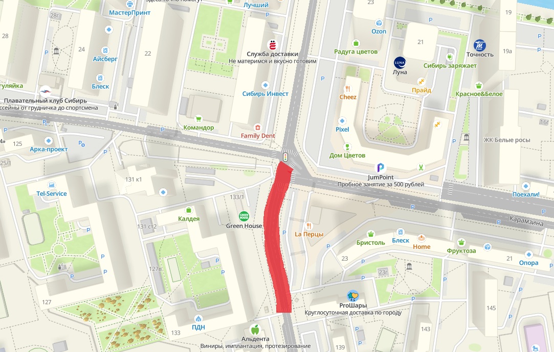 С 06:00 3 декабря до 17:00 10 декабря ограничения будут действовать на проезде-дублёре вдоль здания на Карамзина, 25.