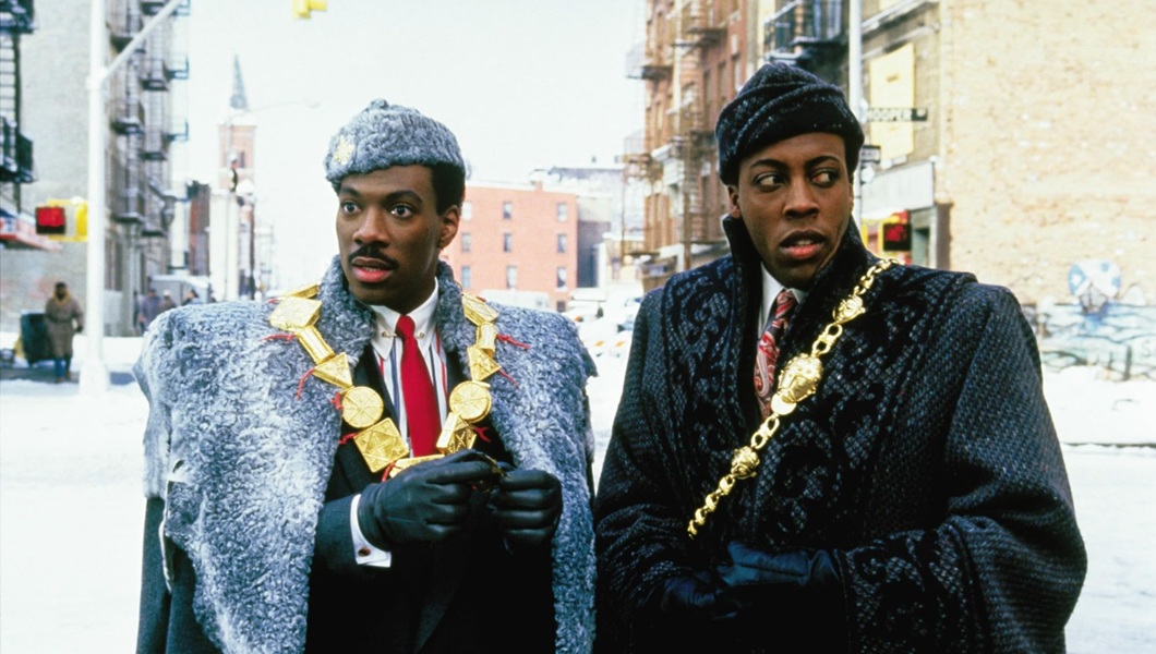 Вообще, появление «Поездки в Америку» — это типичная история развития успешного комедианта. Эдди Мёрфи показал себя прекрасным стендап-комиком и совершил переход в кино. В таких случаях сценарии обычно пишут под актёра, поэтому вместо сюжета всё держится на харизме главного героя. «Поездка в Америку» не стала исключением. Чтобы контраст между Африкой и американскими трущобами был наиболее сильным, принц приезжает в Штаты зимой. Но продолжает улыбаться, не теряет харизмы и лица даже на заснеженных улицах.